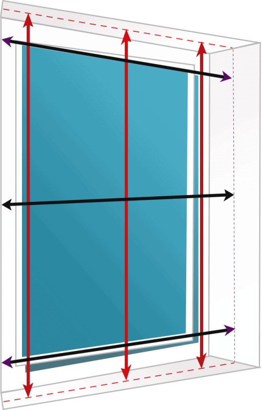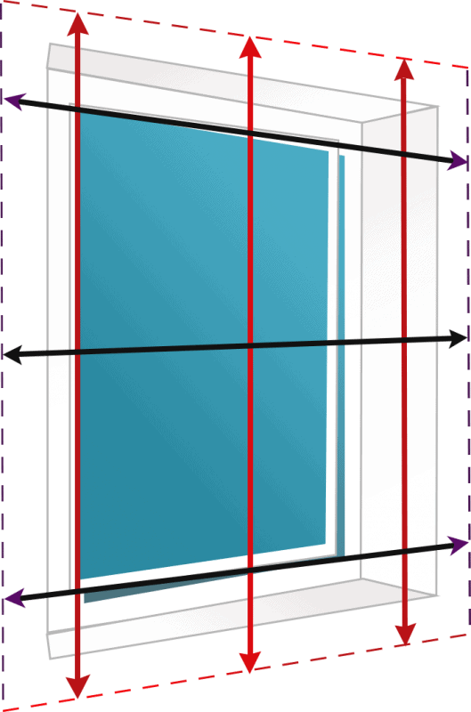 - Measure in 3 places for both the width and the drop. For the width, compare the measurement at the top of the recess with the smallest of the measurements you’ve taken – if the difference between those is less than 25mm, use the measurement at the top of the recess. If it is not, use the smallest